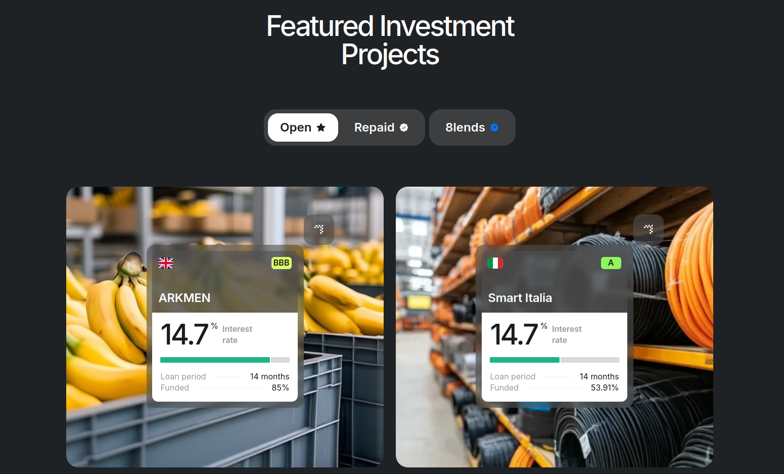 All projects on the platform are categorized and remain available for analysis across their entire lifecycle: Open, Compliance, Prefunded, Funded, Repaid. Historical data is not removed or altered retroactively.